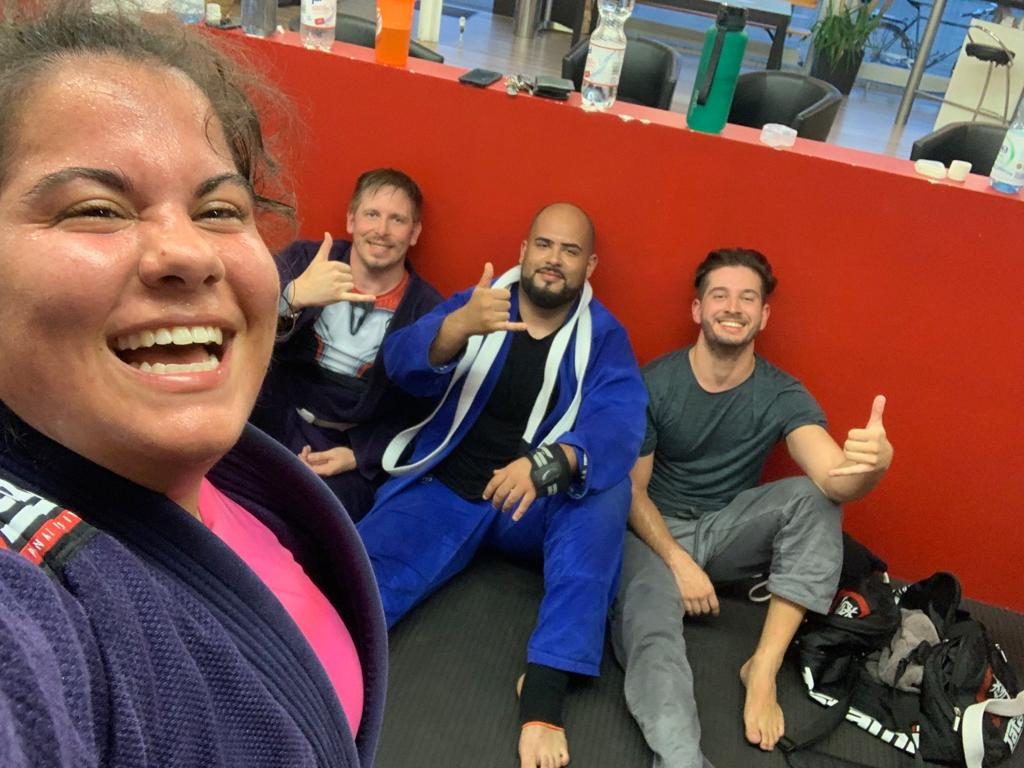 Gestartet sind wir mit den Aufwärmübungen und den Drills. Die wieder sehr angelehnt an unsere Übungen sind. Sechs Minuten Armbar, Triangle Omoplata eine Seite dann die andere Seite und wieder von vorn. Nach der Zeit wurde oben und unten gewechselt. Das war nicht nur anstrengend für den Durchführenden, sondern auch ich hatte Schwierigkeiten so lange sitzen zu bleiben. Und bei der Übung habe ich sofort gemerkt wie die Armbar fast automatisch geht, bei der Triangle ich zu wenig meine Hüfte bewege und die Omoplata…… Ich sag mal: There is massive space for improvement.